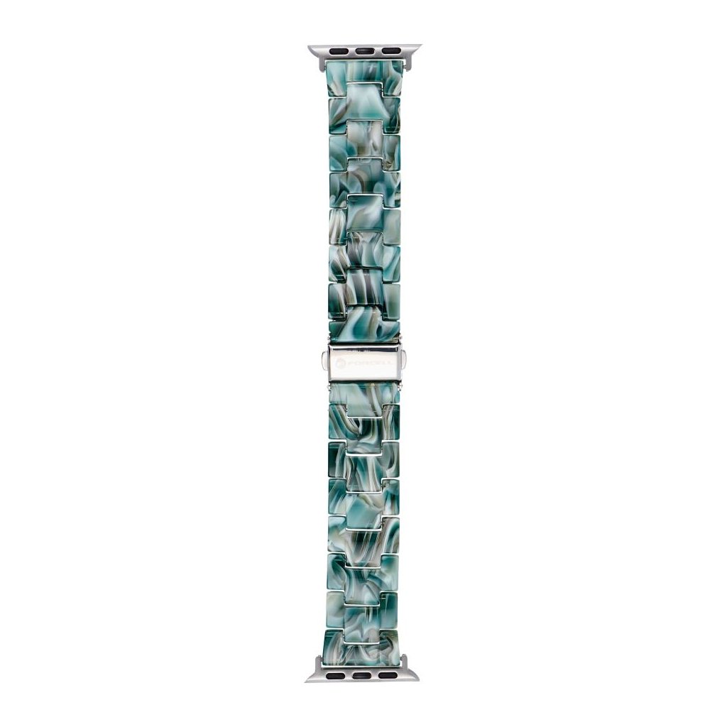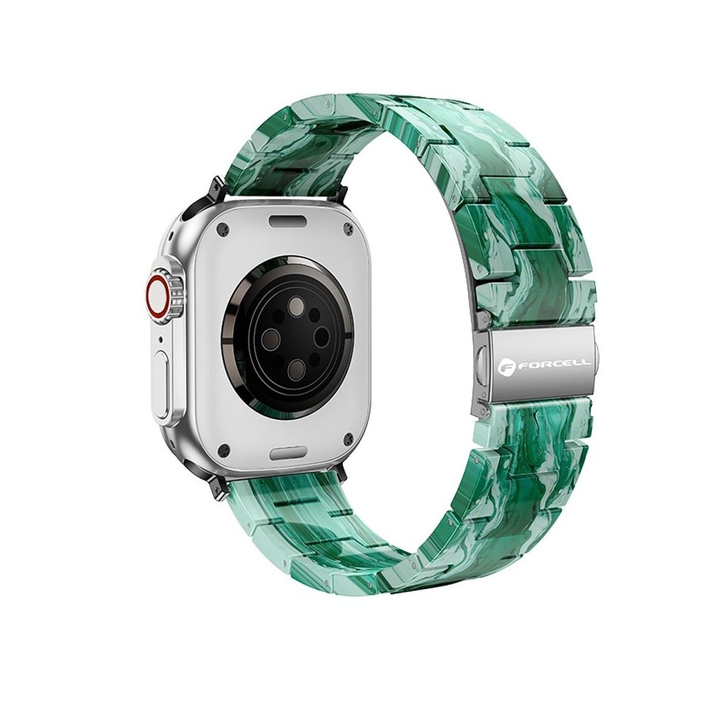FORCELL F-DESIGN FA04 mramorový remienok s textúrou živice pre hodinky APPLE Watch 42 / 44 / 45 / 49 mm zelený