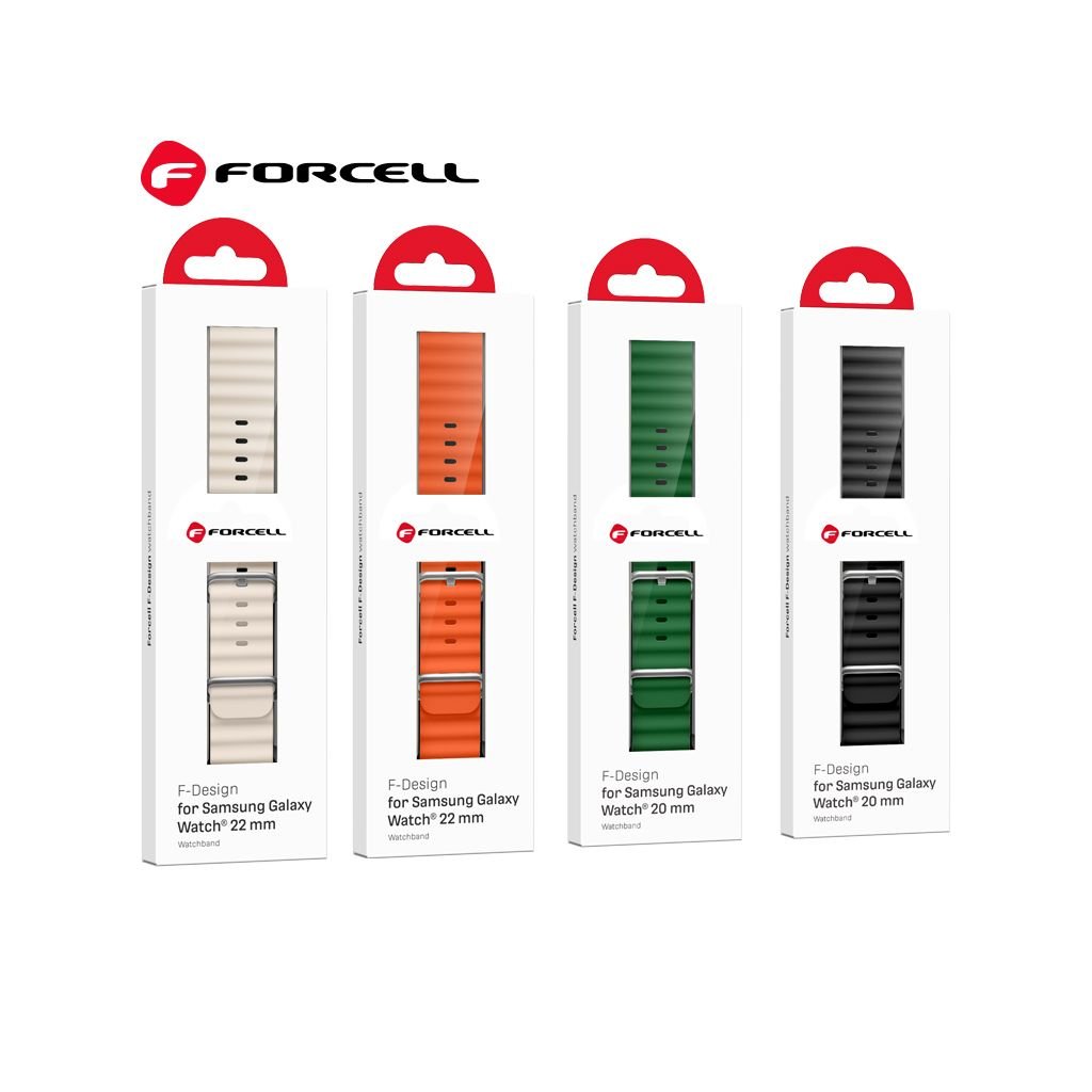 Remienok Forcell F-Design sa vyznačuje nielen klasickým dizajnom, ale aj svojou univerzálnosťou. Možno ho nosiť s akýmikoľvek hodinkami Samsung Watch so šírkou uchytenia 22 mm. Navyše je vhodný do každého šatníka, od športového až po elegantný.