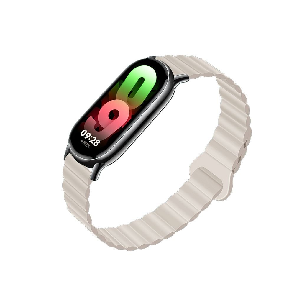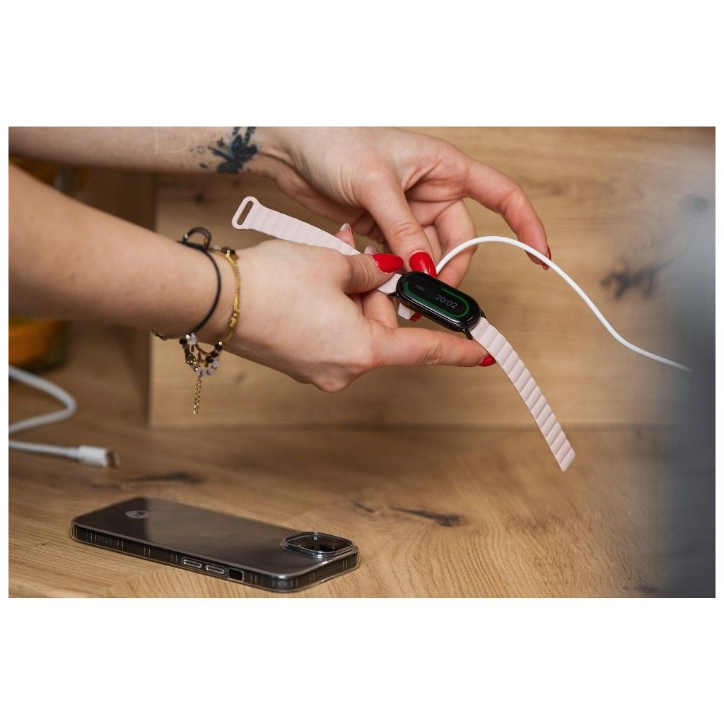 V remienku je použitý silikón šetrný k pokožke a životnému prostrediu, odolný voči vonkajším vplyvom, ako je voda a pot. Má inovatívny systém zapínania na zápästie so skrytým magnetom, ktorý umožňuje pohodlné nasadenie a nastavenie. Okrem toho sa vyznačuje dlhotrvajúcou pružnosťou a odolnosťou. Vďaka tomu je každodenné používanie úplne pohodlné a bezpečné.