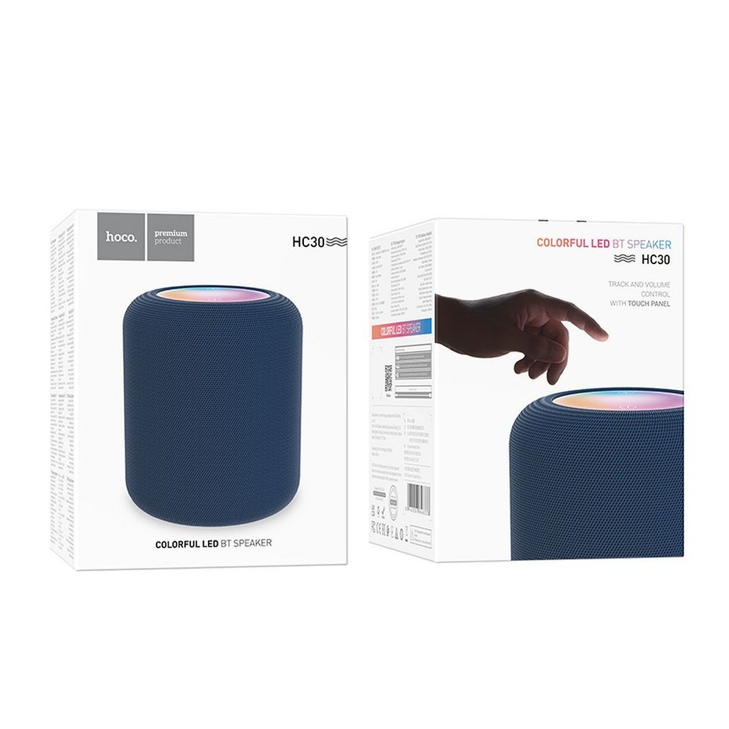 Prenosný bezdrôtový reproduktor Hoco HC30. Umožňuje pripojenie smartfónu a akýchkoľvek zvukových zariadení vybavených technológiou Bluetooth. S RGB LED osvetlením, ktoré pulzuje v rytme prehrávanej hudby dosiahnete ešte lepšiu atmosféru.