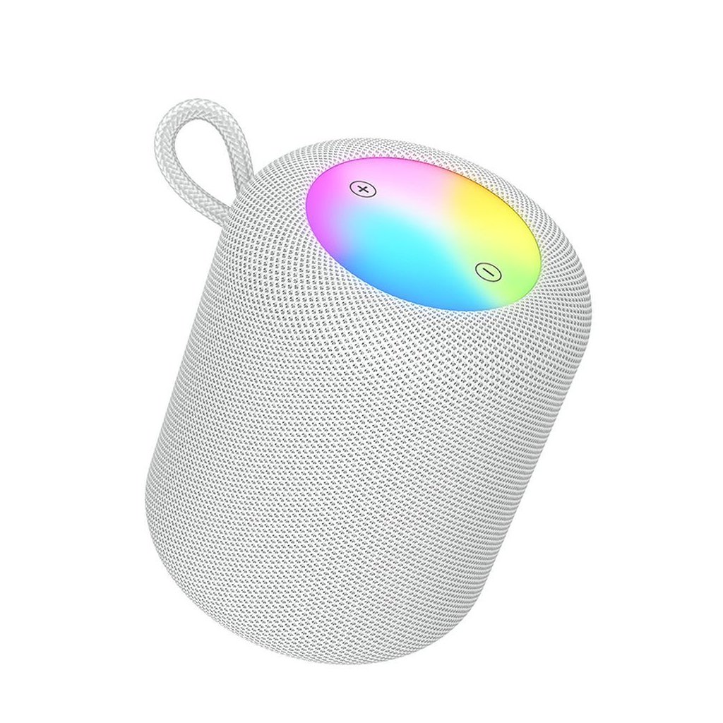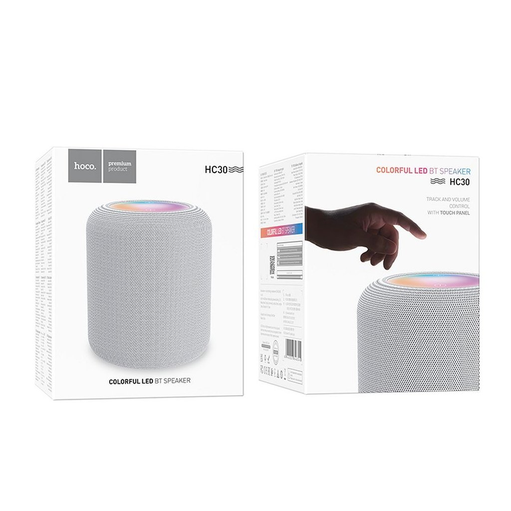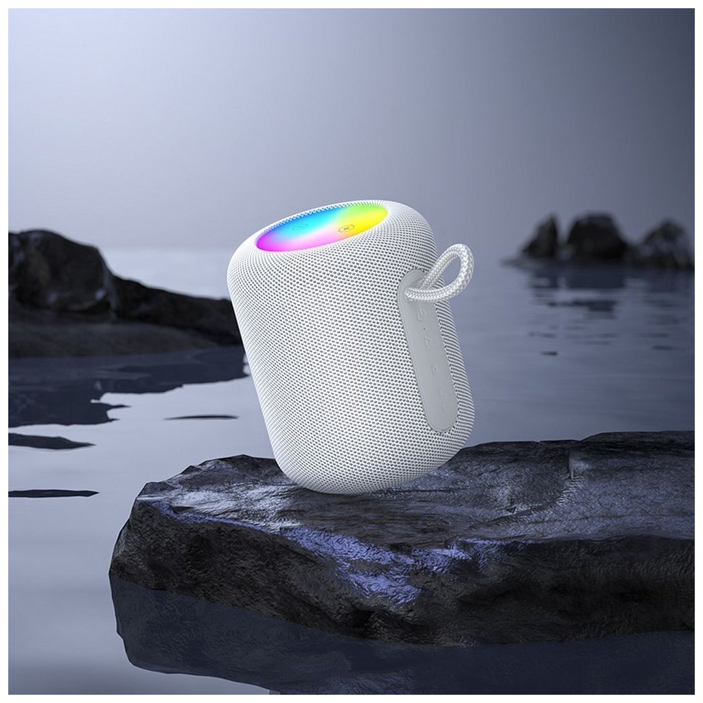 Prenosný bezdrôtový reproduktor Hoco HC30. Umožňuje pripojenie smartfónu a akýchkoľvek zvukových zariadení vybavených technológiou Bluetooth. S RGB LED osvetlením, ktoré pulzuje v rytme prehrávanej hudby dosiahnete ešte lepšiu atmosféru.