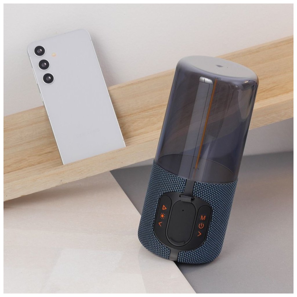Kapacitná batéria (1200 mAh) umožňuje dlhodobé prehrávanie hudby s výdržou až niekoľko hodín. Vďaka kompaktným rozmerom sa reproduktor pohodlne prenáša.