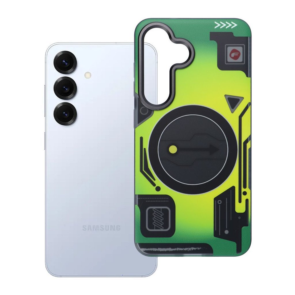 Puzdro pre Samsung S25 Forcell F-Protect Levels Dvojvrstvová technológia 4D kompatibilná s Magsafe Vojenský test odolnosti proti pádu cyber green
