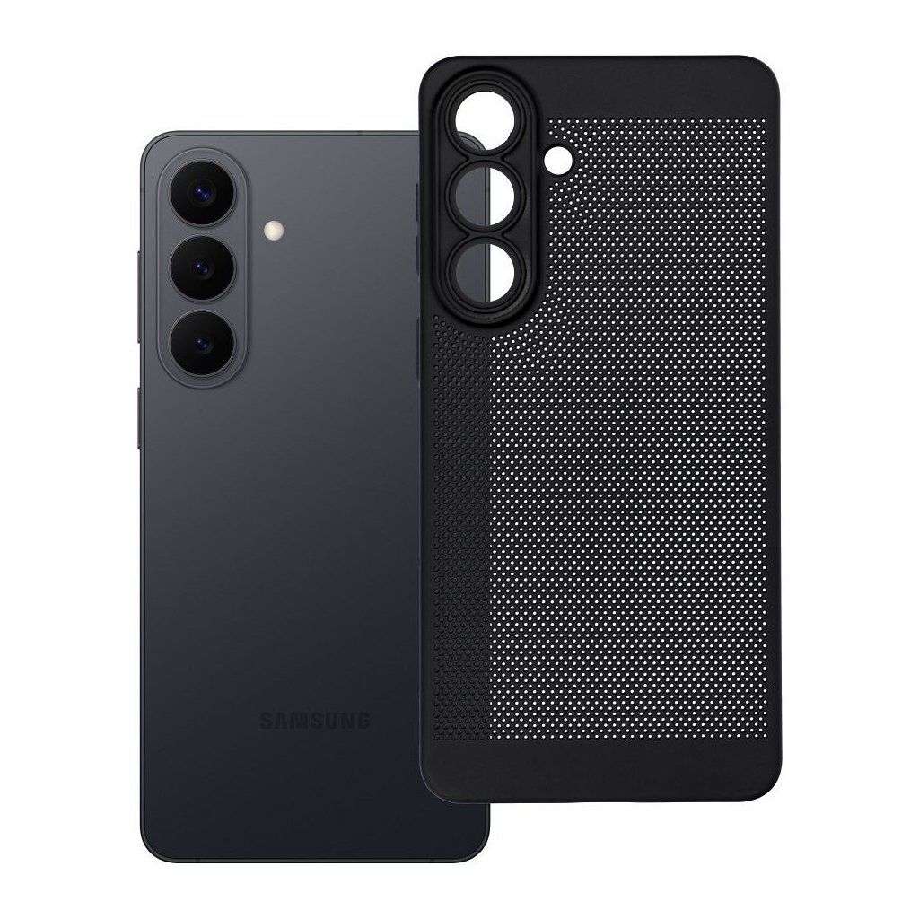 Kryt s vetraním Case pre Samsung S26 PLUS Breezy čierny je riešenie ktoré spája ochranu, funkčnosť a štýlový dizajn. Bolo navrhnuté tak, aby zabezpečilo optimálnu cirkuláciu vzduchu, čím sa znižuje riziko zahrievania telefónu. Vďaka perforovanému vzoru a kvalitnému plastu puzdro chráni telefón a zachováva jeho štíhlosť. Je vyrobené z jedného odliatku, čo zaručuje dokonalé prispôsobenie a ochranu ostrovčeka fotoaparátu.