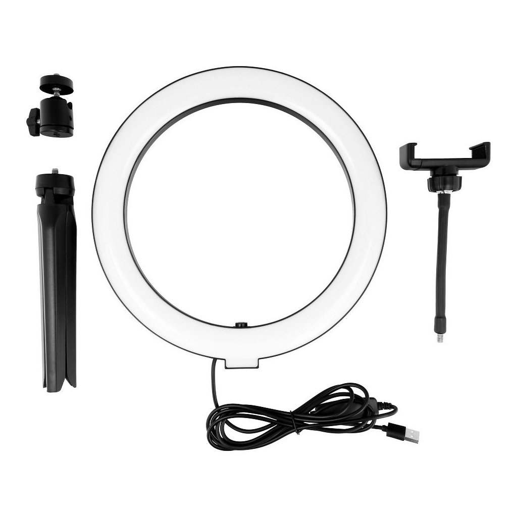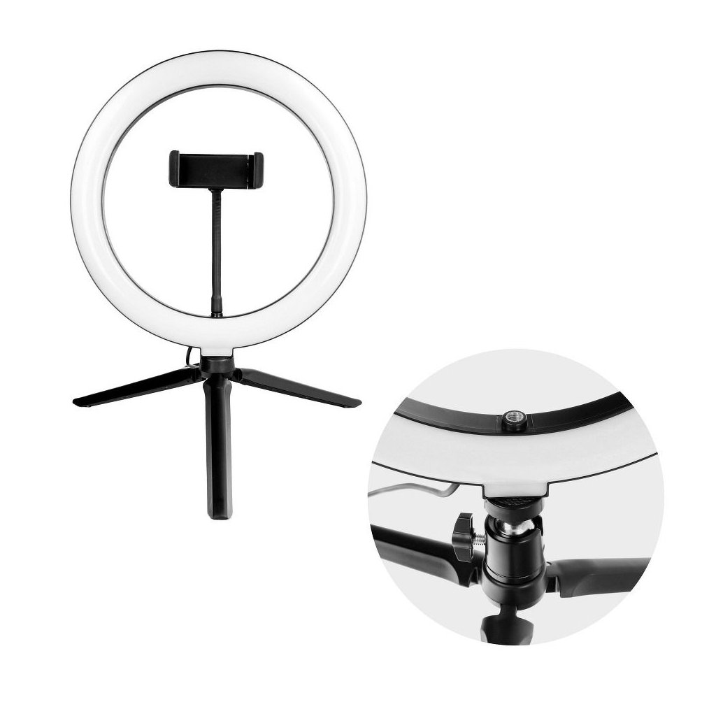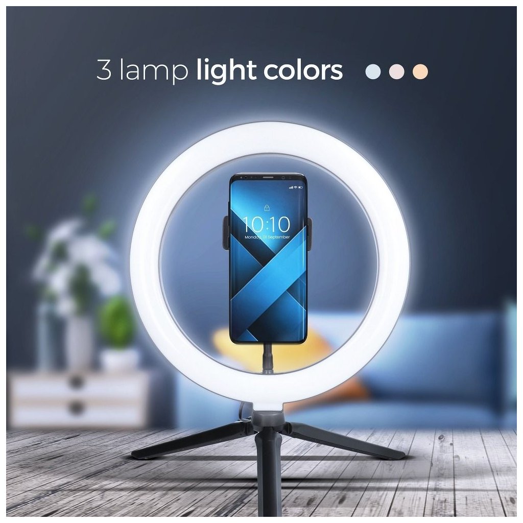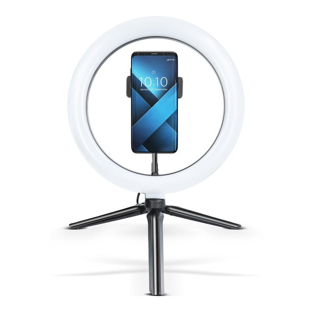 LED lampa s držiakom na telefón. Je to nevyhnutný prvok stojana každého streamera.Prstencové svetlo sa používa nielen v hernom svete, ale aj v iných oblastiach streamovania.