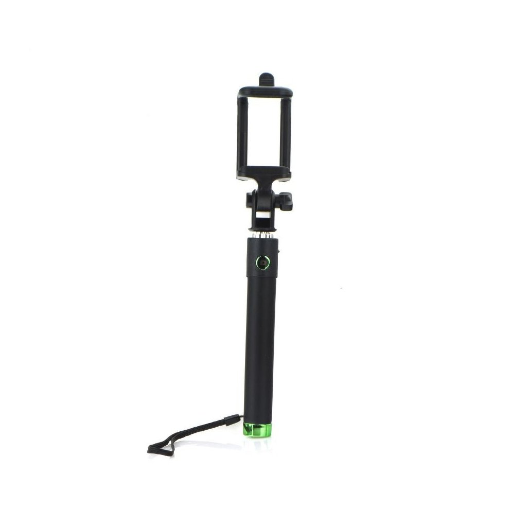 Selfie držák s dálkovým ovládáním v rukojeti (kabel 3,5 mm) zelený/ čierny