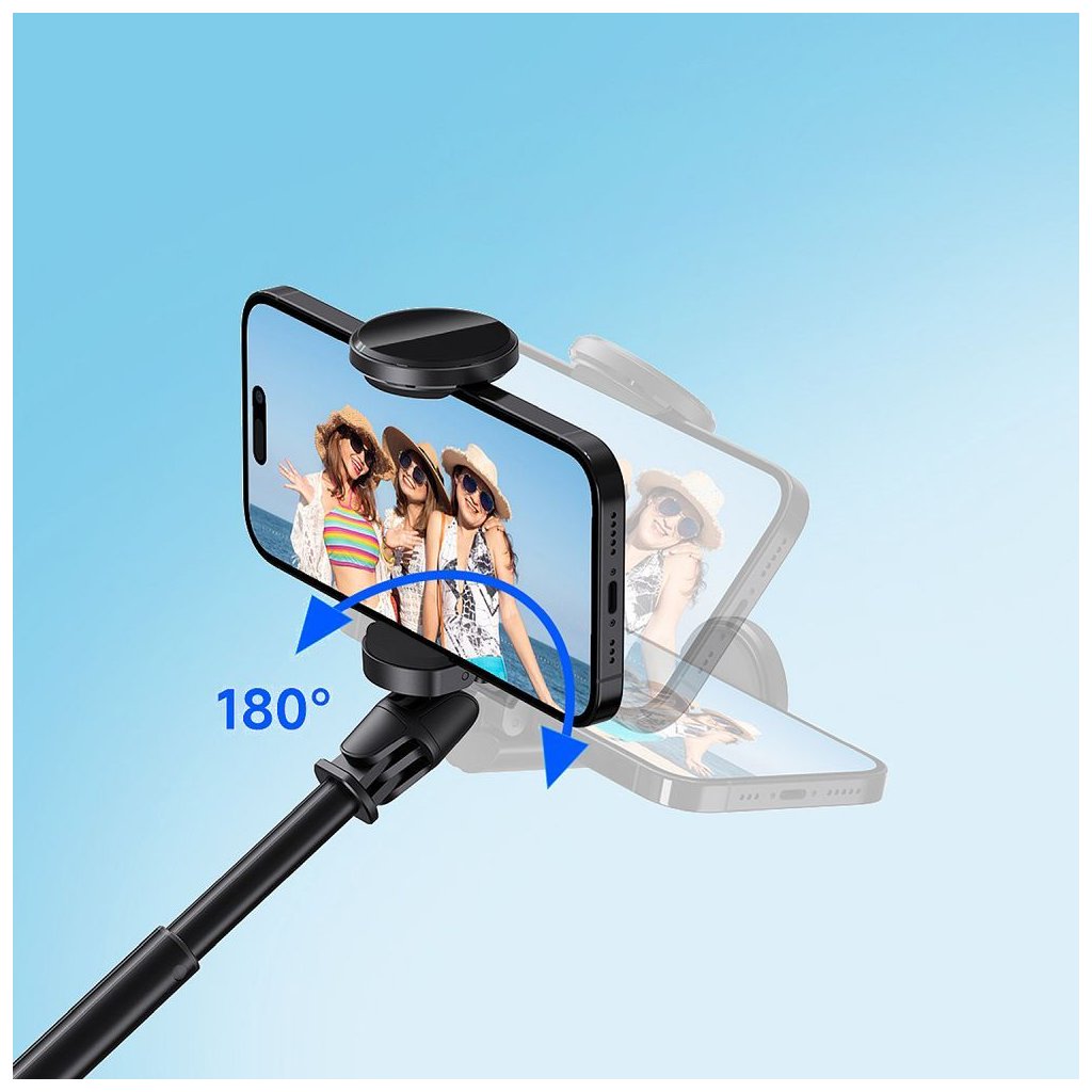 Selfie tyč sa dá rozložiť do stabilného statívu s praktickými protišmykovými nožičkami, vďaka čomu je ideálna na použitie v náročných podmienkach. Je perfektná na fotografovanie s dlhou expozíciou, ako aj na nočné zábery. Vstavaný magnetický diaľkový ovládač navyše poskytuje skvelé pohodlie pri fotografovaní z diaľky, čo vám umožňuje fotografovať bez toho, aby ste sa dotýkali telefónu.