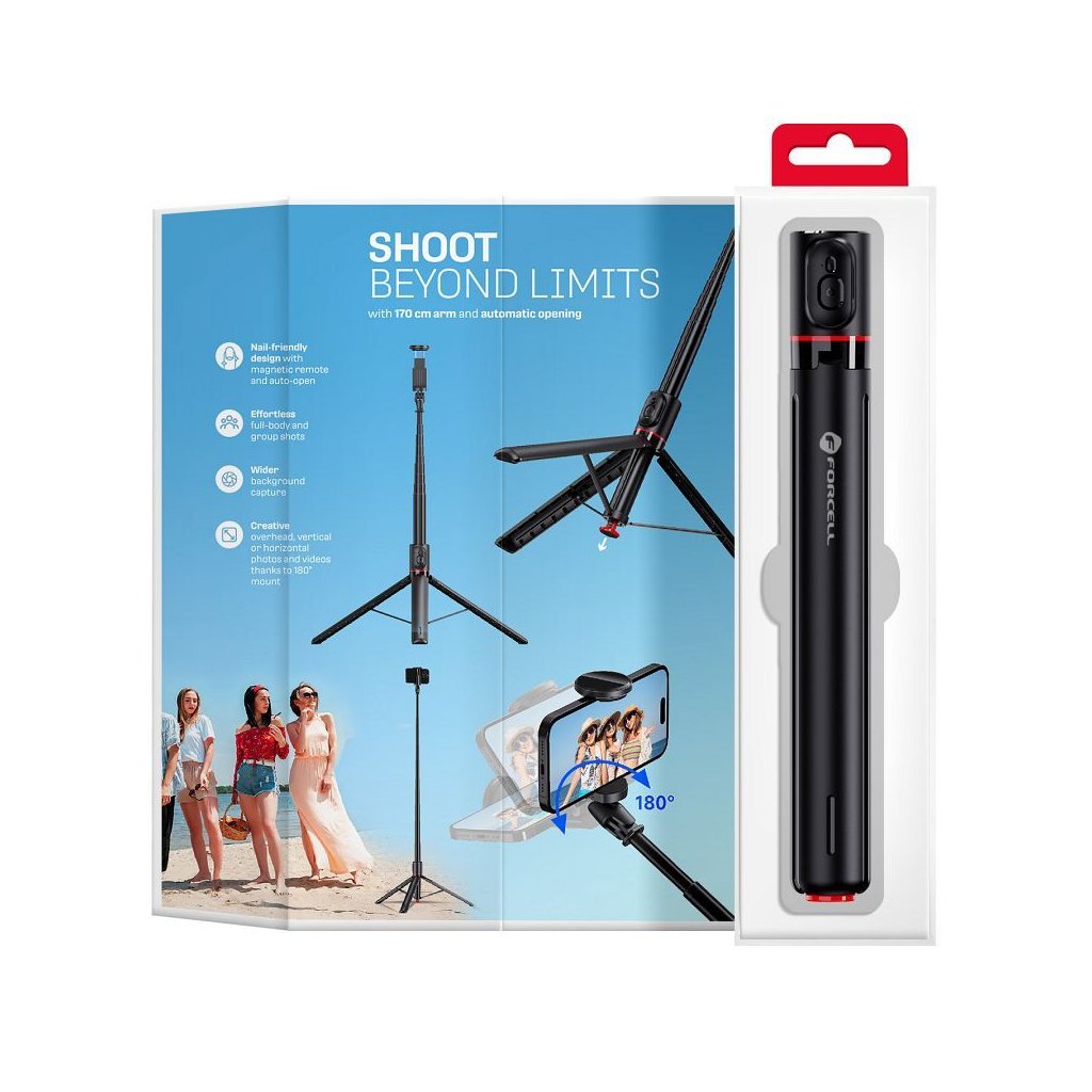 FORCELL F-GRIP F170XL automatická selfie tyč s diaľkovým ovládaním, statív, čierna