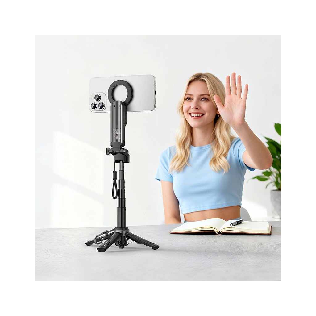 Model Hoco K27 PRO je vhodný pre domáce aj vonkajšie použitie. Konštrukcia umožňuje rýchle nastavenie stojana pre živé vysielanie, fotografie, videá alebo selfie, bez nutnosti držať telefón v ruke.