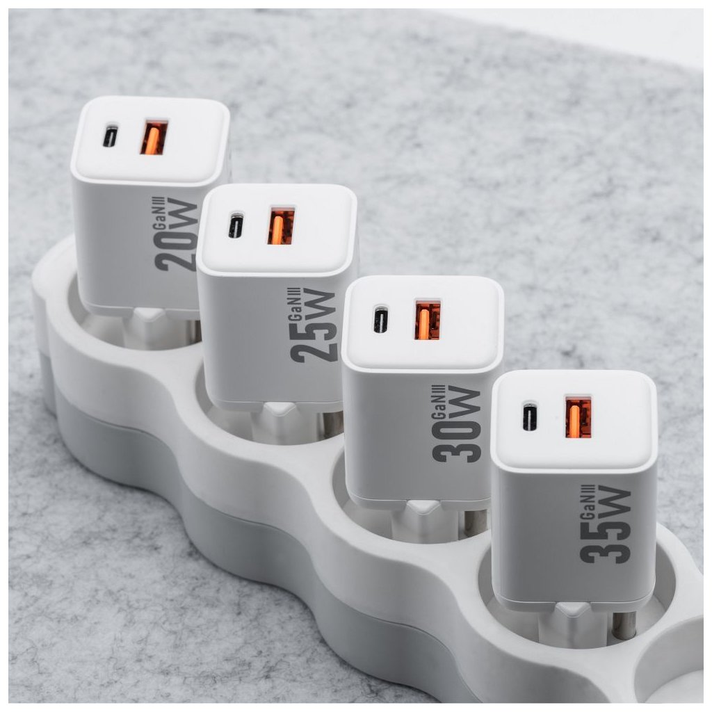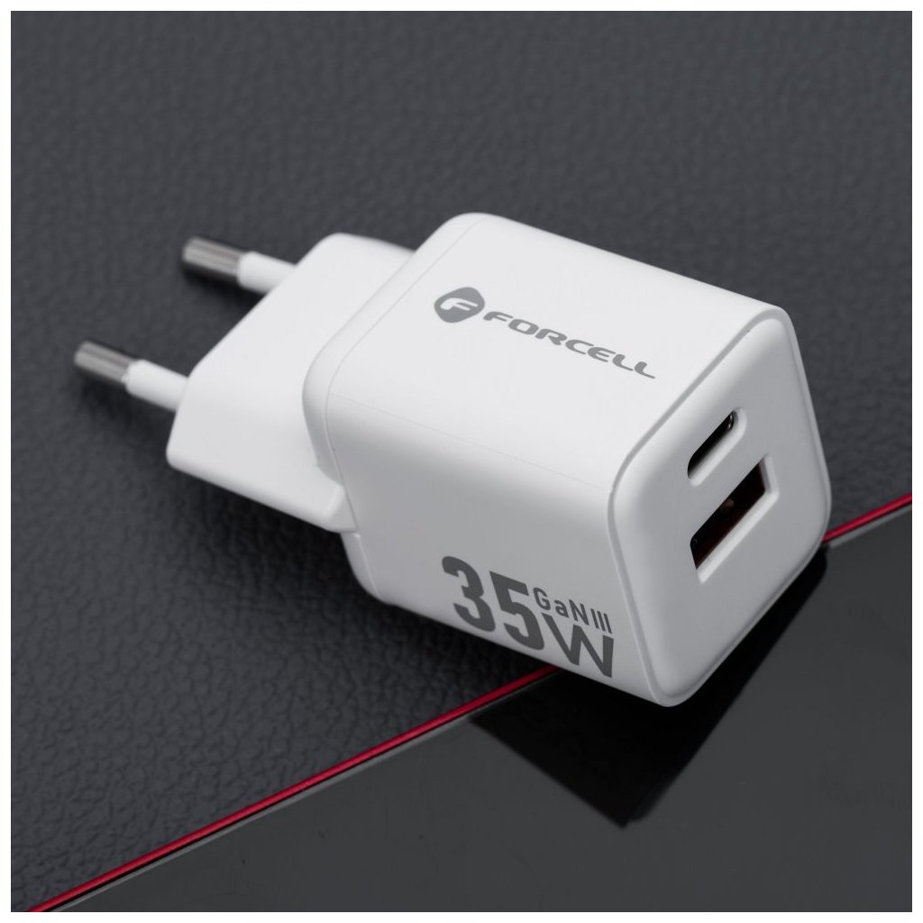 Cestovná nabíjačka FORCELL F-ENERGY Mini GaN III USB-C a USB-A, PD QC4.0 35W biela (VT-35C)