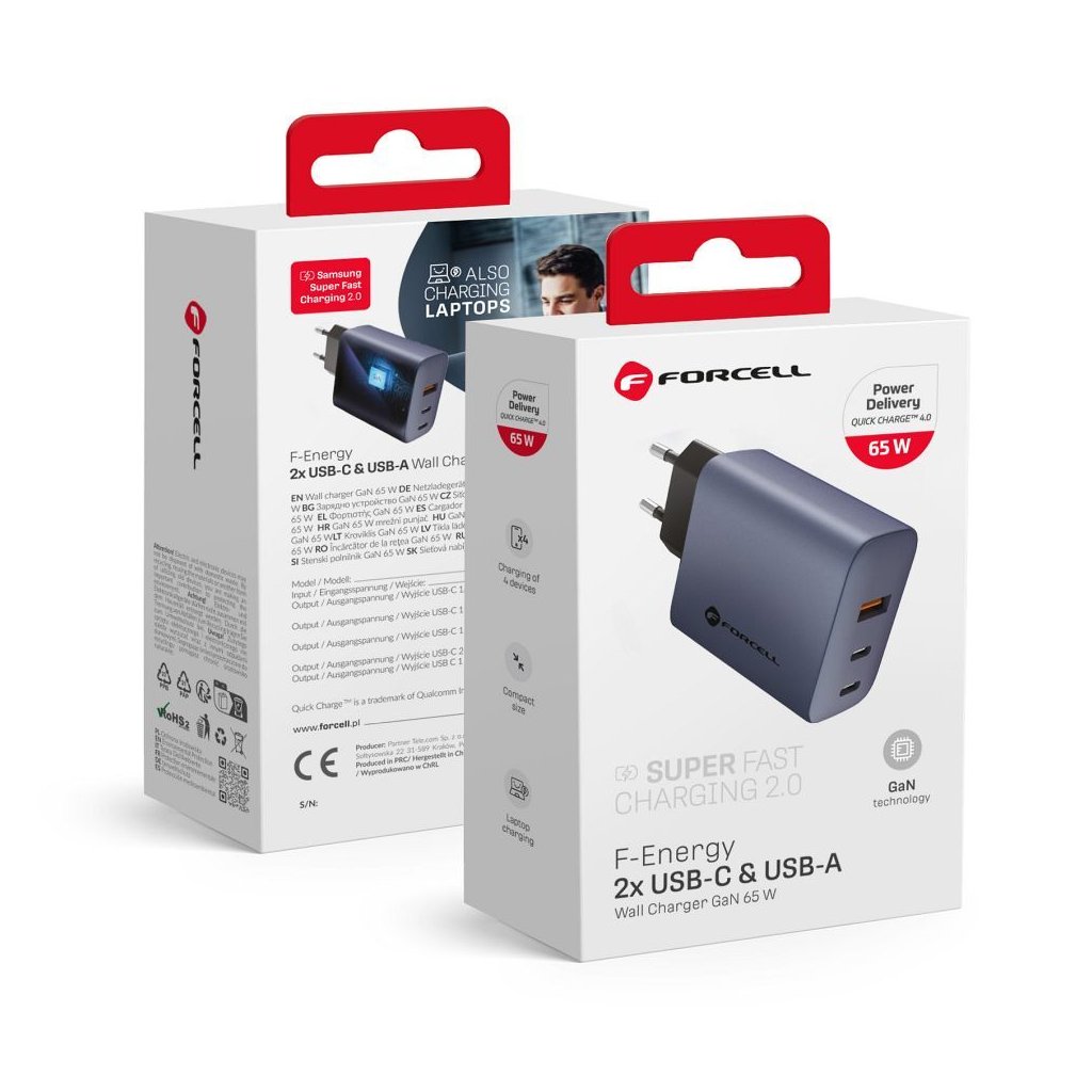 Cestovná nabíjačka Forcell F-Energy s 2x USB-C a USB-A 4A 65 W s PD a Quick Charge 4.0