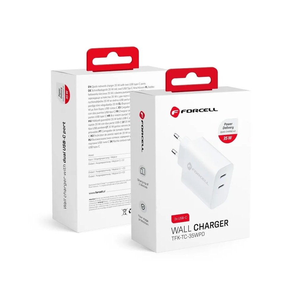 Cestovná rýchlo nabíjačka Forcell 2x USB-C 3A 35W s PD a Quick Charge 4.0