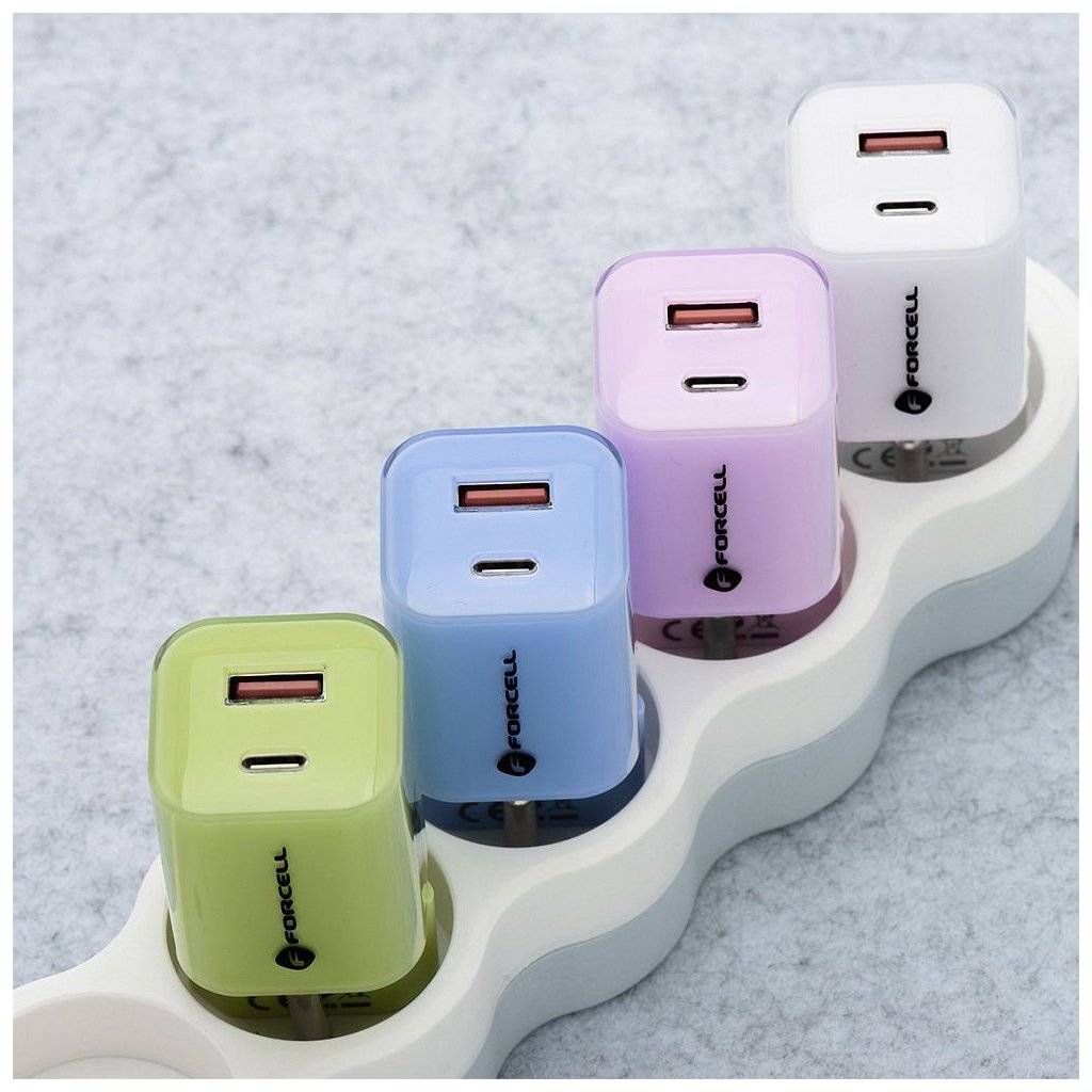 Cestovná nabíjačka FORCELL F-ENERGY Crystal Color GaN III s USB-C káblom, PD QC4.0 33W zelená (VT-41)