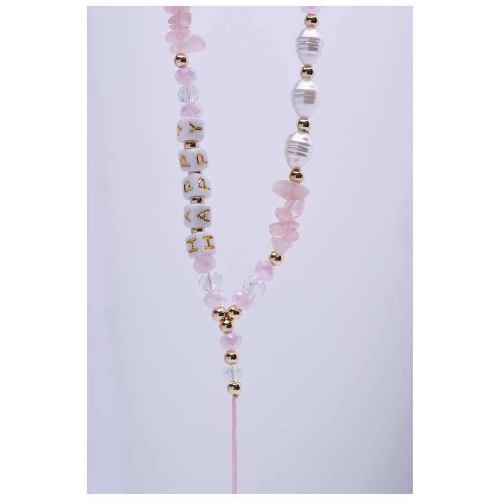 HAPPY prívesok na telefón / dĺžka šnúrky 44cm (22cm v slučke) / na ruku - svetloružová