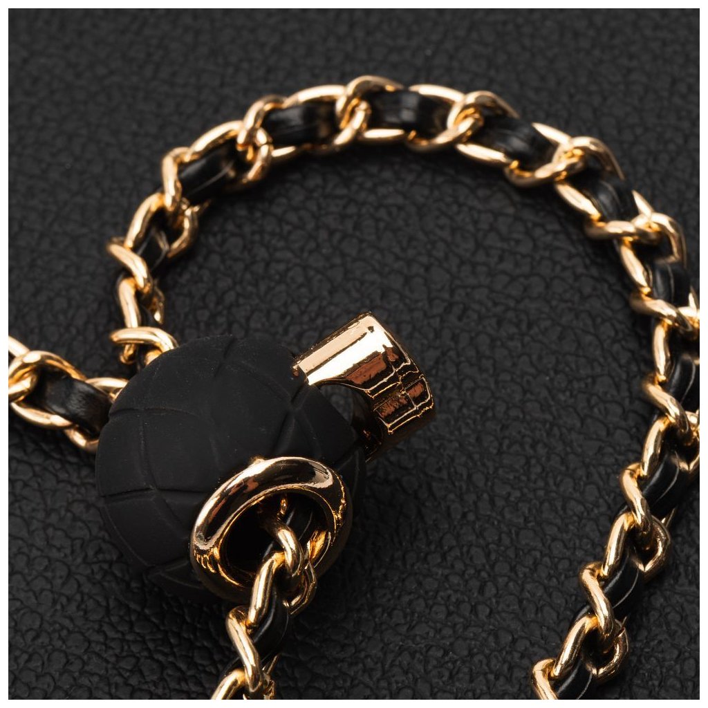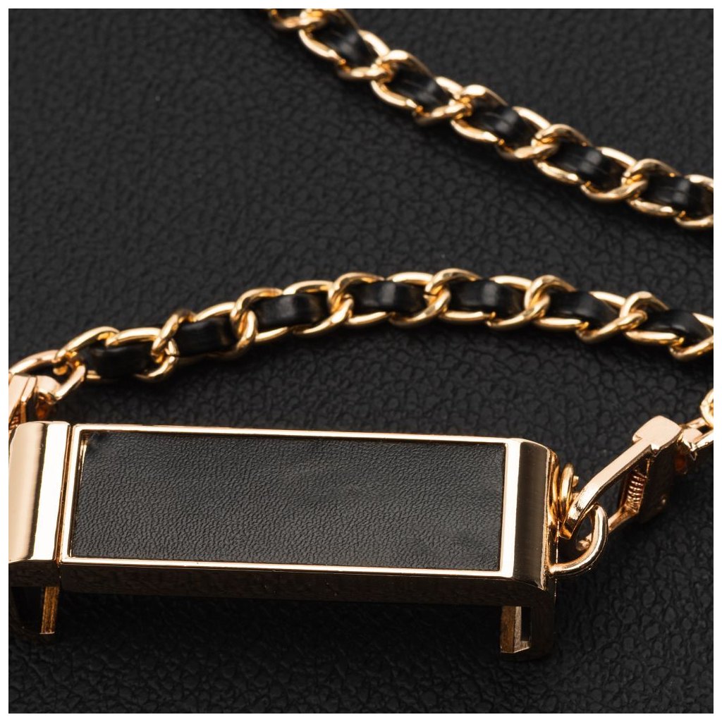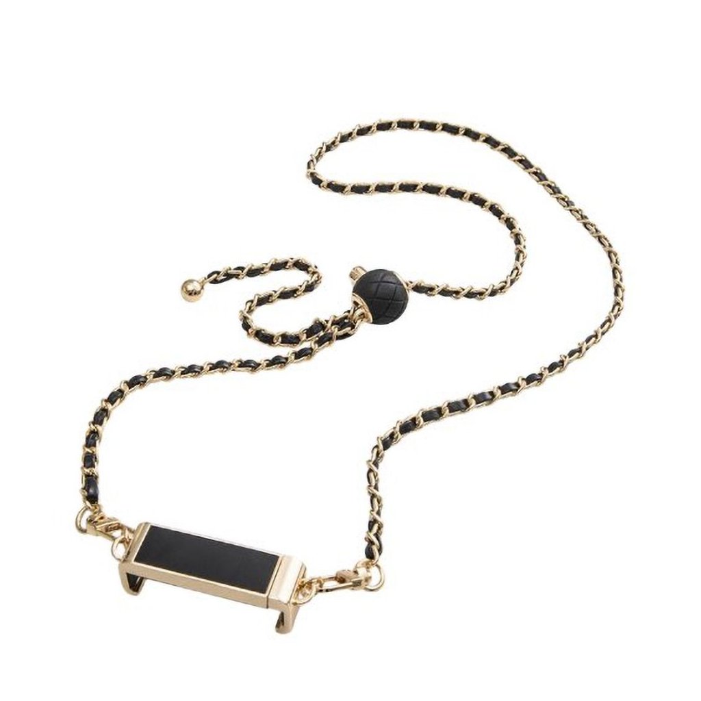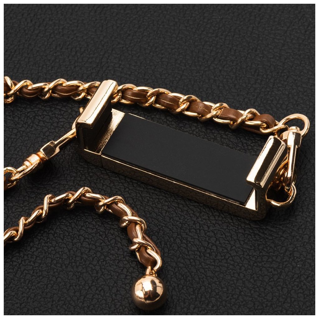 Vyrobený z kovovej retiazky a pletenej PU kože, produkt je moderným doplnkom každého telefónu. Zlaté povrchové úpravy a ozdobná nastavovacia guľôčka mu dodávajú elegantný charakter. Dĺžku šnúrky je možné nastaviť podľa potrieb používateľa – na nosenie cez rameno alebo okolo krku.