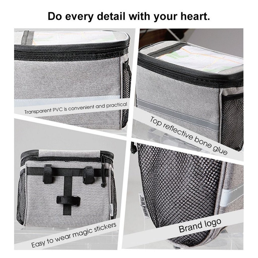 Taška na bicykel s objemom 3,5 litra je funkčný doplnok na riadidlá bicykla. Táto taška na bicykel so zipsom umožňuje bezpečne prepravovať príslušenstvo, náradie na bicykel, smartfón a dokonca aj jedlo alebo nápoje. Špeciálny vnútorný materiál dokáže udržať potraviny pri správnej teplote. Po stranách sa nachádzajú dve ďalšie sieťované vrecká.