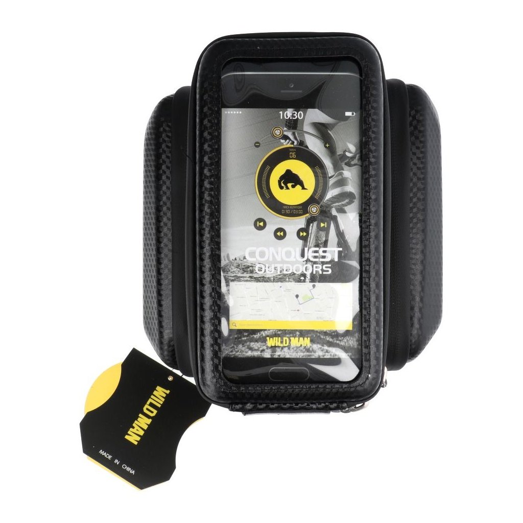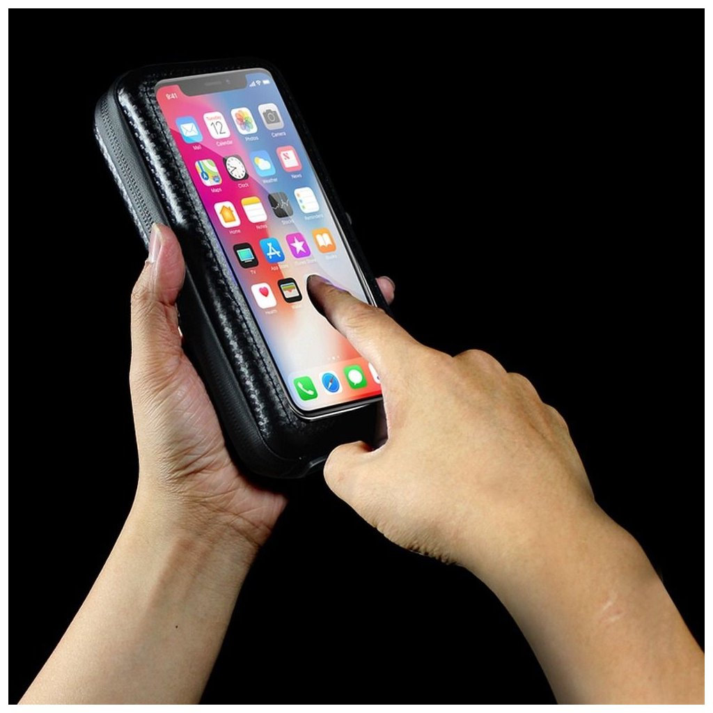 Vodotesná taška na bicykel s objemom 1,2 litra s držiakom na telefón s dotykovým priezorom a s dvomi bočnými úložnými priestormi. Horná časť tašky určená na telefón je oddeliteľná na suchý zips, čiže si telefón môžete jednoducho zobrať bez potreby vyberania z puzdra. Je vybavená priehľadným okienkom, ktoré umožňuje používať telefón alebo navigáciu. Výrobok je kompatibilný s mobilnými zariadeniami s uhlopriečkou 4"-7". Kryt je vyrobený zo zosilneného PU a EVA, takže sa nemusíte obávať o svoje prístroje pri náraze alebo páde bicykla na bok. Silné popruhy na suchý zips umožňujú jednoduchú montáž výrobku na horný rám bicykla. Puzdro na bicykel má miesto pre telefón s priehľadom s dotykovou funkciou, ktoré umožňuje voľné používanie smartfónu a navigácie bez nutnosti vyberania telefónu z puzdra. Vodotesná konštrukcia chráni pred vlhkosťou a striekajúcou vodou, takže kryt môžete používať aj v daždi. Puzdro má v spodnej časti špeciálny výrez na kábel slúchadiel.