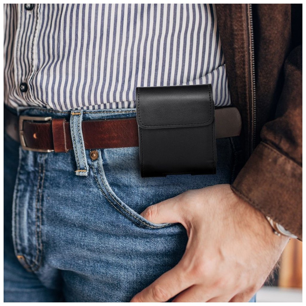 Univerzálne horizontálne puzdro na telefón značky Royal, ktoré možno pripevniť na opasok. Je vyrobené z prírodnej talianskej kože a dostupné v 5 veľkostiach: V, M, L, XL, XXL. Toto puzdro vo veľkosti V je určené pre skladacie telefóny s rozmermi 7,5 × 8 × 1,5 cm.