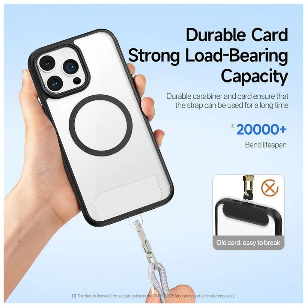 DUX DUCIS Plaz je šnúrka na telefón navrhnutá s ohľadom na maximálny komfort a funkčnosť. Multifunkčný dizajn vám umožňuje nosiť telefón na ramene aj na krku, čo je ideálne pre rôzne situácie a poskytuje pohodlie bez použitia rúk. Nastaviteľná dĺžka šnúrky vám umožňuje prispôsobiť ju vašim individuálnym preferenciám, čo zvyšuje komfort používania.