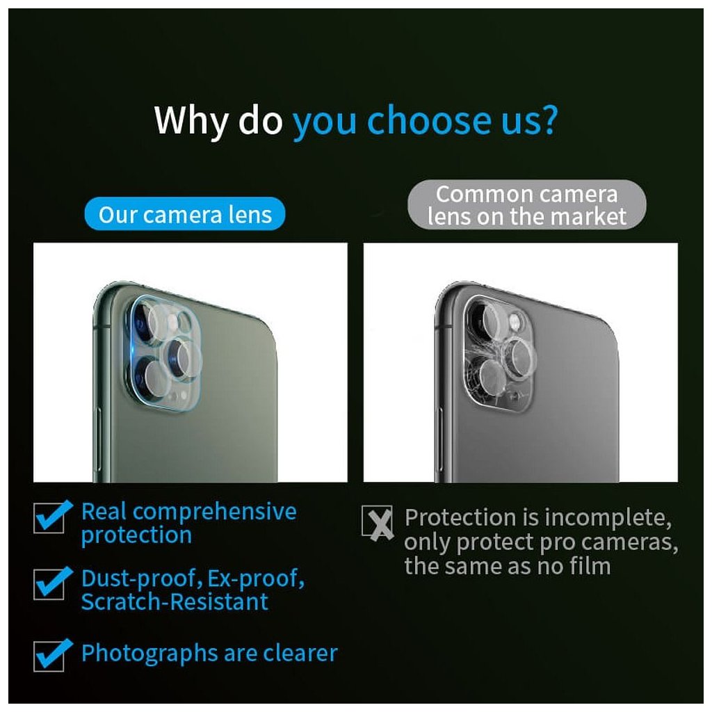Tvrdené sklo s vysokou priepustnosťou svetla pre objektívy fotoaparátu. Vysoká priehľadnosť a antireflexná vrstva zaisťujú vynikajúcu kvalitu fotografií a videí a nízka hrúbka zaručuje pohodlné používanie. Sklo pokrýva celú plochu fotoaparátu, nielen objektívy.