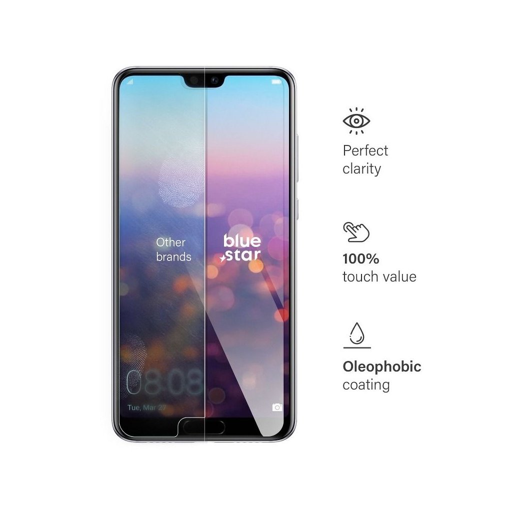 Ochranné tvrdené sklo Blue Star pre HUAWEI P20 zaistí Vášmu telefónu efektívnu ochranu, vynikajúcu čistotu obrazu a zamaskuje škrabance na displeji. Vďaka oleofóbnemu poťahu sa nemusíte báť odtlačkov prstov a zachytávania mastnôt.
