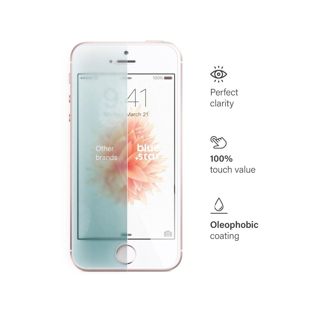 Ochranné tvrdené sklo Blue Star pre IPHONE 5SE zaistí Vášmu telefónu efektívnu ochranu, vynikajúcu čistotu obrazu a zamaskuje škrabance na displeji. Vďaka oleofóbnemu poťahu sa nemusíte báť odtlačkov prstov a zachytávania mastnôt.