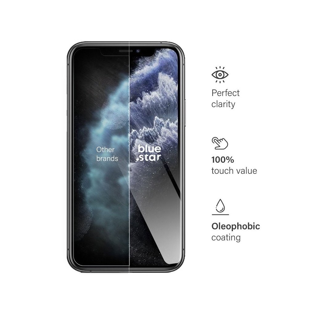 Ochranné tvrdené sklo to iPhone XS / 11 PRO MAX Blue Star zaistí Vášmu telefónu efektívnu ochranu, vynikajúcu čistotu obrazu a zamaskuje škrabance na displeji. Vďaka oleofóbnemu poťahu sa nemusíte báť odtlačkov prstov a zachytávania mastnôt.