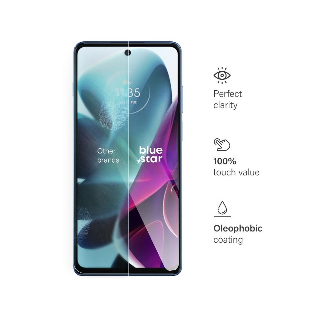 Ochranné tvrdené sklo Blue Star pre Motorola G200/G100/G60/G60s/G51 5G/G9 Power zaistí Vášmu telefónu efektívnu ochranu, vynikajúcu čistotu obrazu a zamaskuje škrabance na displeji. Vďaka oleofóbnemu poťahu sa nemusíte báť odtlačkov prstov a zachytávania mastnôt.