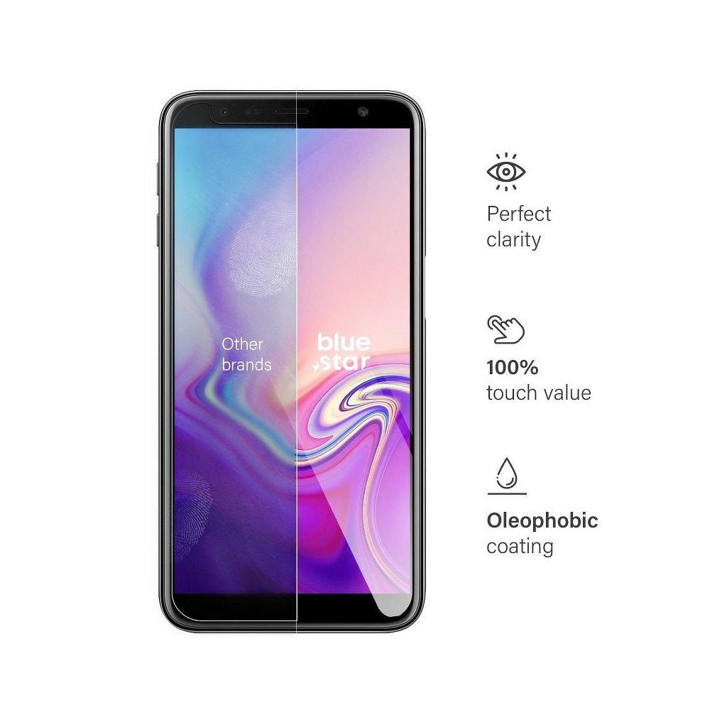 Ochranné tvrdené sklo Blue Star pre SAMSUNG J4 Plus zaistí Vášmu telefónu efektívnu ochranu, vynikajúcu čistotu obrazu a zamaskuje škrabance na displeji. Vďaka oleofóbnemu poťahu sa nemusíte báť odtlačkov prstov a zachytávania mastnôt.