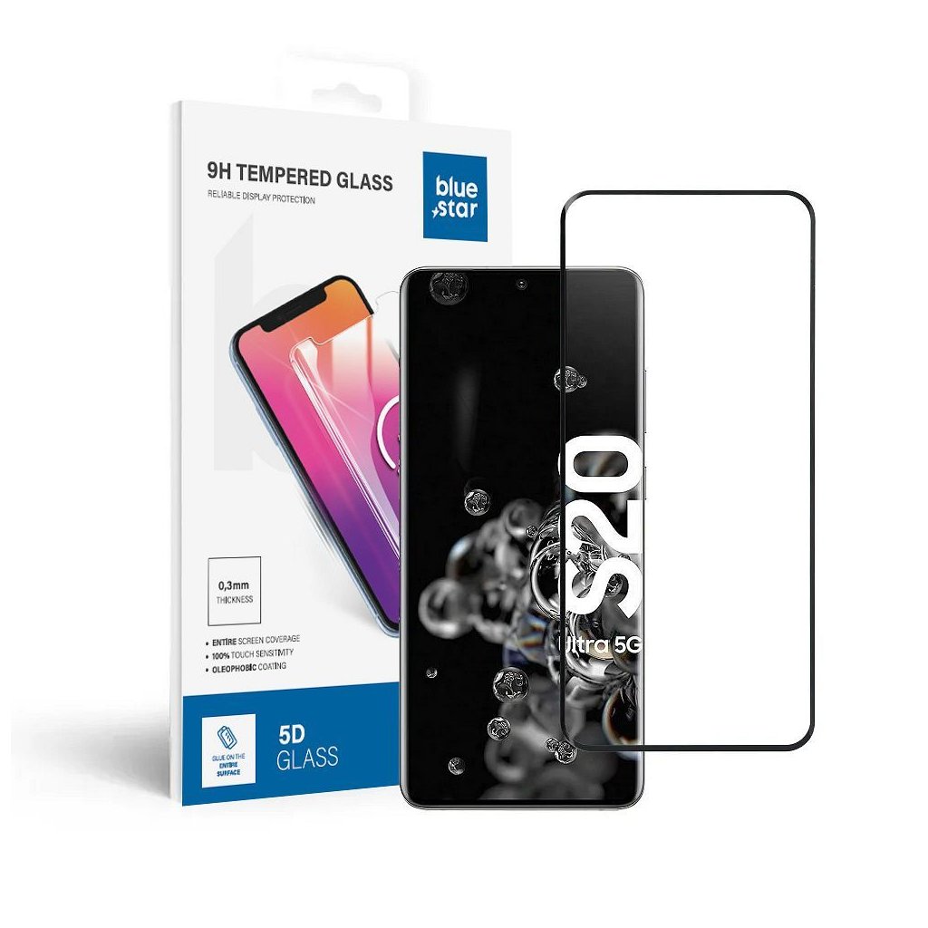 - Tvrdené sklo 5D to Samsung Galaxy S20 ULTRA (full glue / case friendly) Blue Star 5D czarne