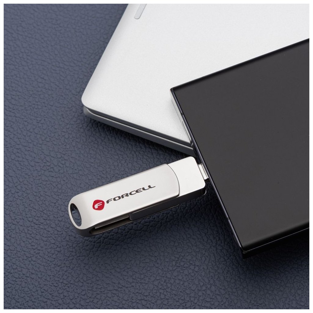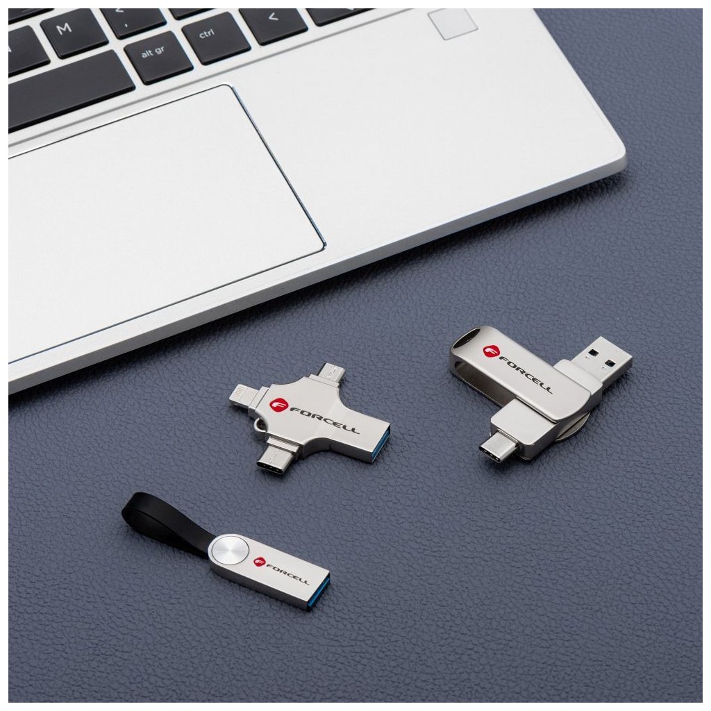 FORCELL F-DATA USB kľúč, kovový, 128 GB, USB 3.2 Gen 1 (USB A), strieborný