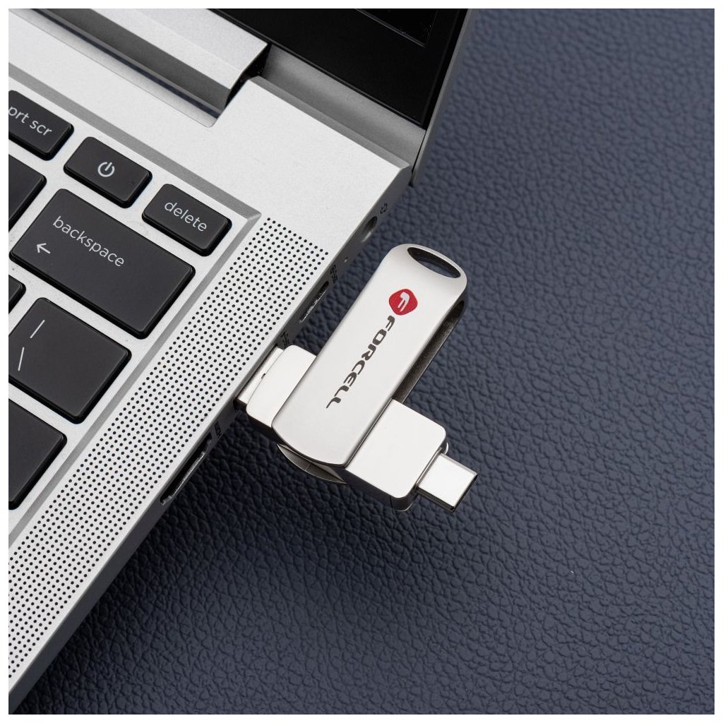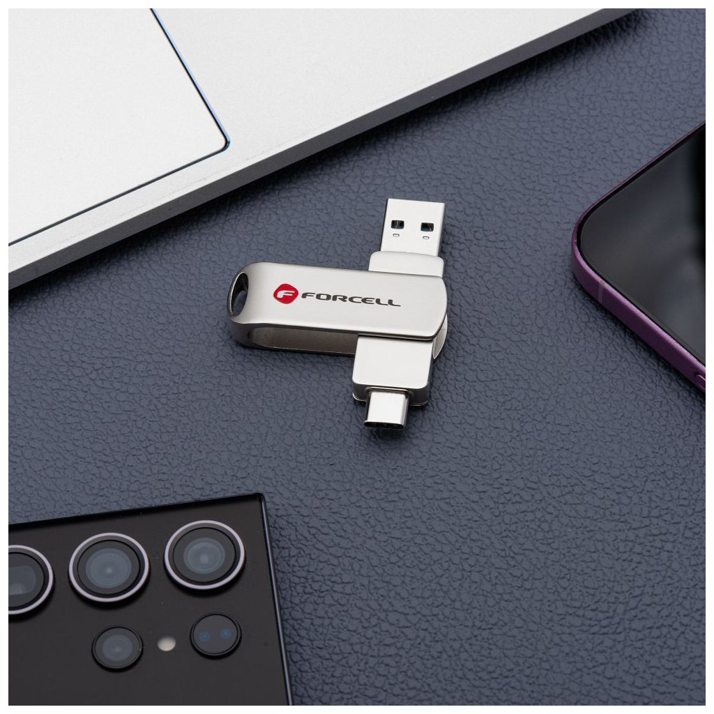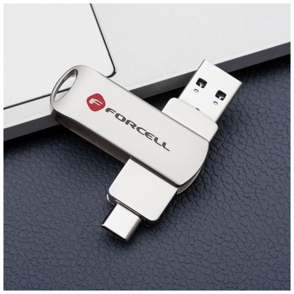 FORCELL F-DATA USB kľúč Metal Duo 32GB USB 3.2 Gen 1 (USB A / Type C) strieborný