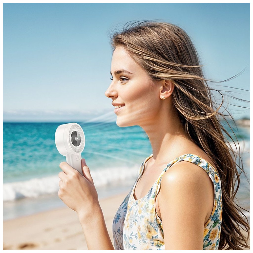 Ventilátor ponúka 5 úrovní regulácie rýchlosti prúdenia vzduchu, čo vám umožňuje prispôsobiť intenzitu chladenia vašim aktuálnym potrebám. Prúdenie vzduchu generované zariadením je relatívne tiché (45 dB), čo zaisťuje pohodlné používanie v akomkoľvek prostredí. Digitálny displej navyše informuje o aktuálnej úrovni nabitia batérie, čo umožňuje neustále sledovať stav zariadenia.