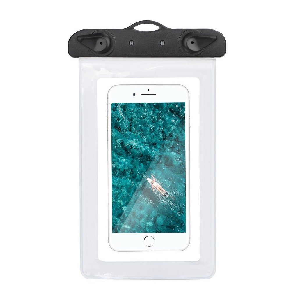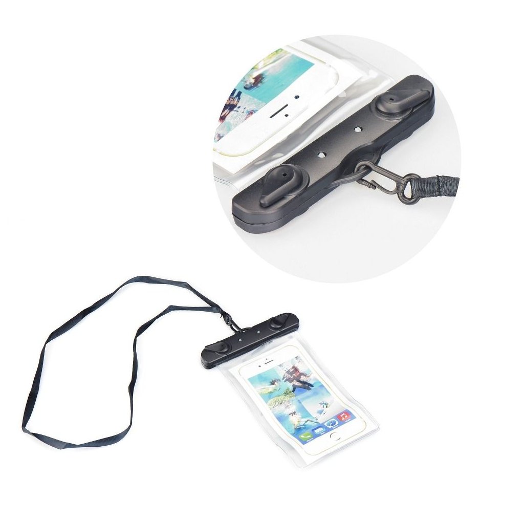 Univerzálna vodotesná taška s dvojitým plastovým uzáverom a pohodlným upevnením na vodítko. Ideálna na pláž - zabráni striekajúcej vode. Puzdro bolo vybavené špeciálnou dvojstupňovou ochranou, ktorá znižuje riziko vniknutia vody do zariadenia. Celé puzdro je vyrobené z odolného silikónu. Puzdro má šnúrku, ktorá umožňuje zavesiť telefón na krk. Nemá certifikát vodotesnosti.