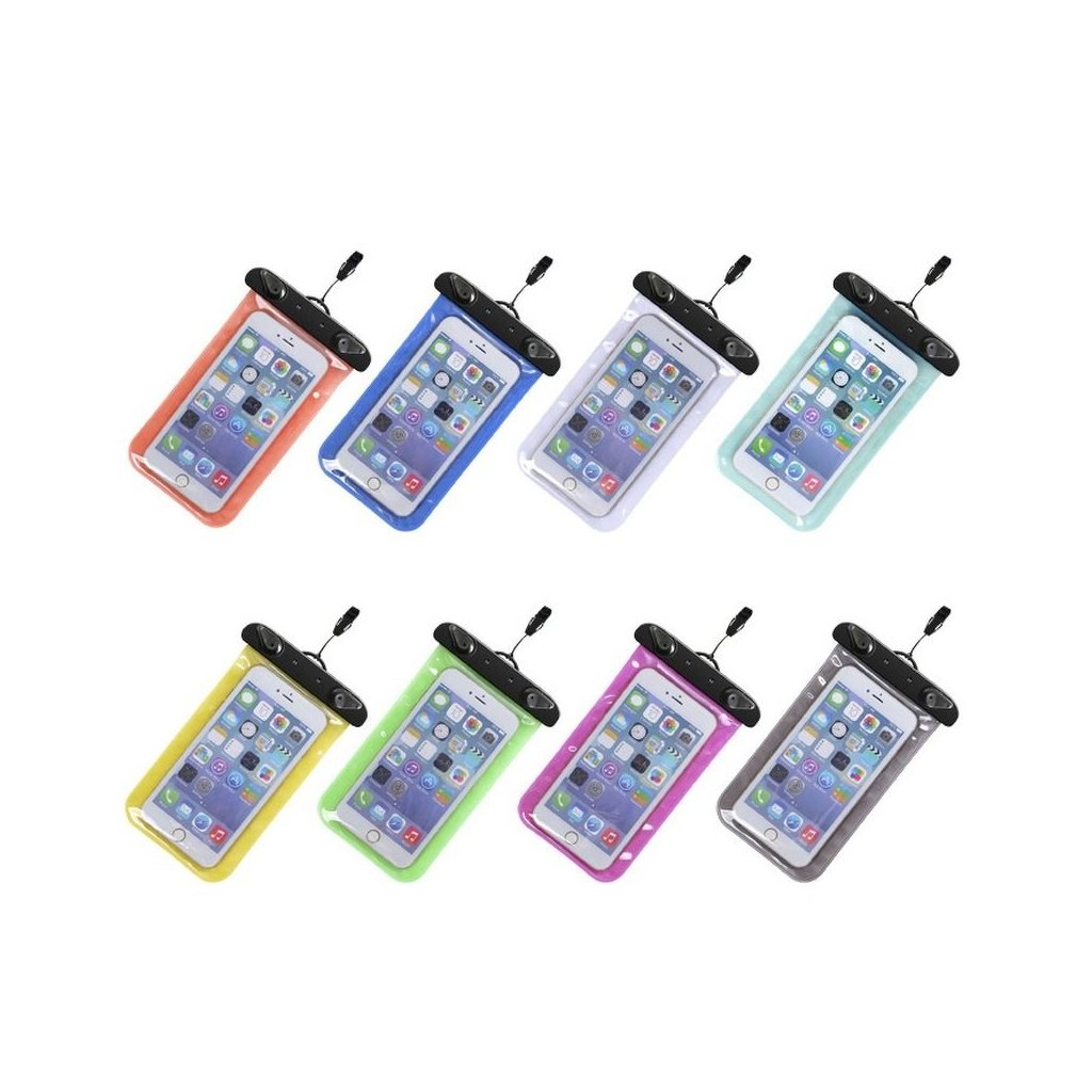 Univerzálna vodotesná taška s dvojitým plastovým uzáverom a pohodlným upevnením na vodítko. Ideálna na pláž - zabráni striekajúcej vode. Puzdro bolo vybavené špeciálnou dvojstupňovou ochranou, ktorá znižuje riziko vniknutia vody do zariadenia. Celé puzdro je vyrobené z odolného silikónu. Puzdro má šnúrku, ktorá umožňuje zavesiť telefón na krk. Nemá certifikát vodotesnosti. ň